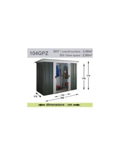 - Surface de toit 18.6 m² avec une pente de 3.5°. Débords de toit avant de 228 cm, arrière 16 cm et côtés de 3 cm. Onduline en acier galvanisé incluse