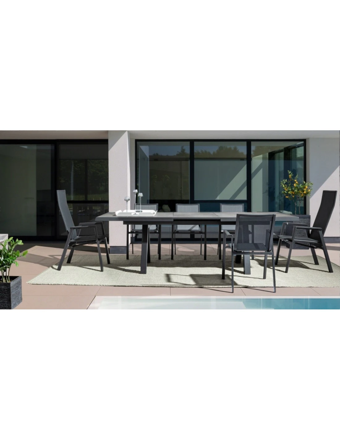 Fauteuil De Jardin Piazza Empilable – Aluminium Graphite – Graphite / Bleu Canard