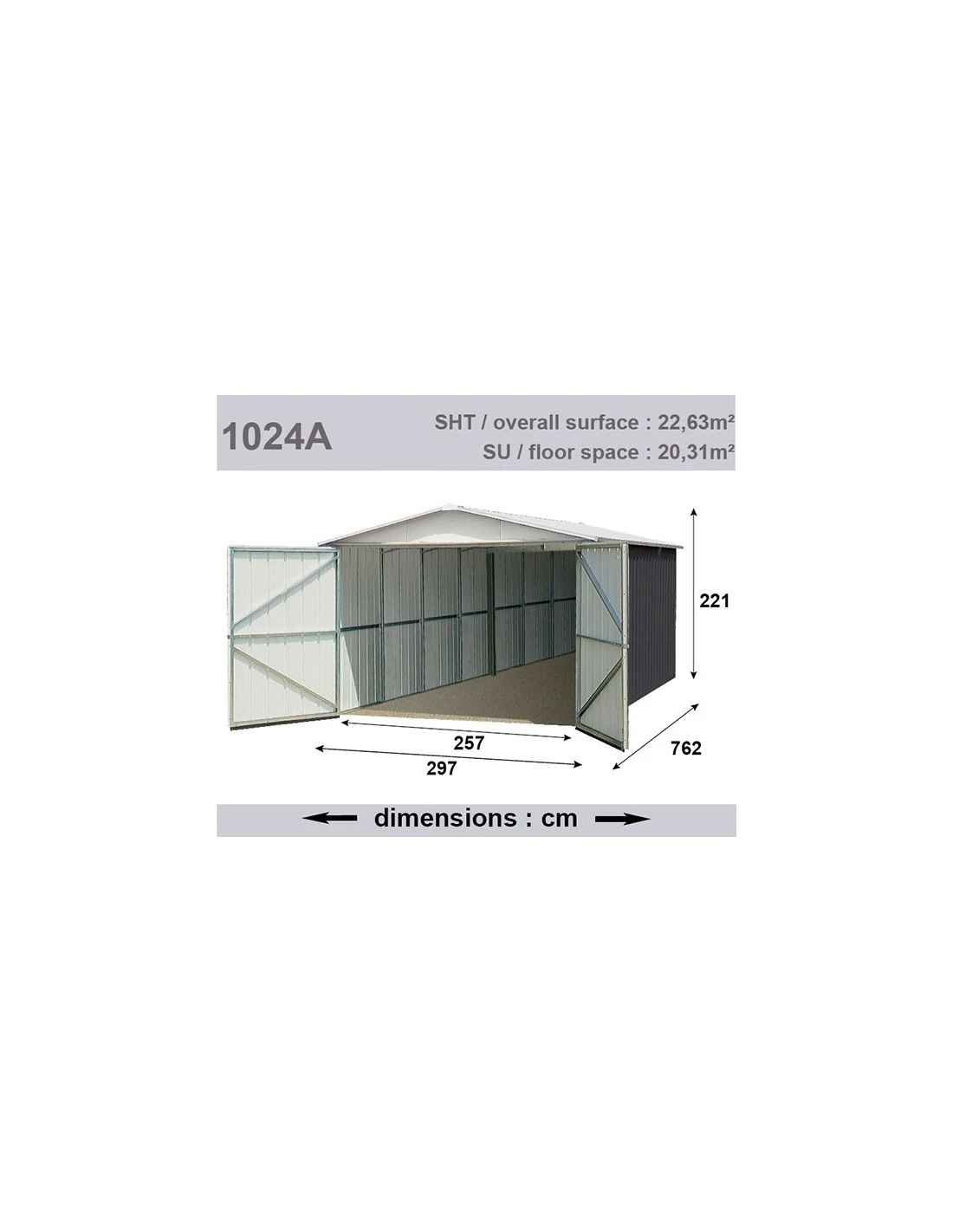 - 1 double-portes de 2.57 m de passage x 1.76 m de haut sans seuil.